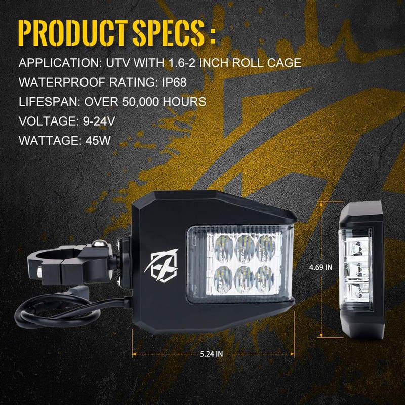 - FEATURES - Xprite UTV Side Mirrors Lights with blue tinted anti-glare mirror. Updated with a new design that provides a clear High-definition view day and night without distortion. Includes integrated LED Spot Lights that help illuminate the path ahead but also allow you to see what's behind. Premium quality for all weather conditions.
