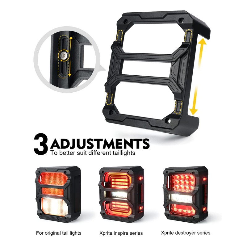 - Adjustable Cover - The Slide-able Rods Design of Xprite's tail light guards allows for maximum display of taillight light, as the levers can be moved up and down to suit your personal preference. This unique design will give your taillights a special, one-of-a-kind look.