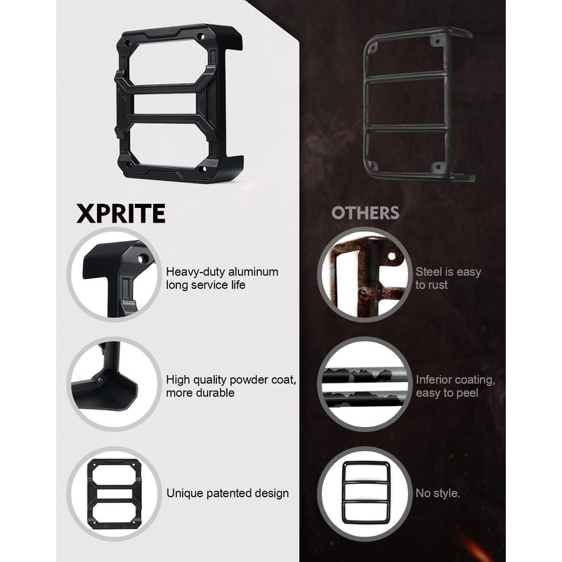 - Extra Protection - Xprite's tail light guards are made of aluminum and finished with a matte black finish, ensuring they are resistant to rust, corrosion, and paint damage. This protects your taillights from external impact and deformation.