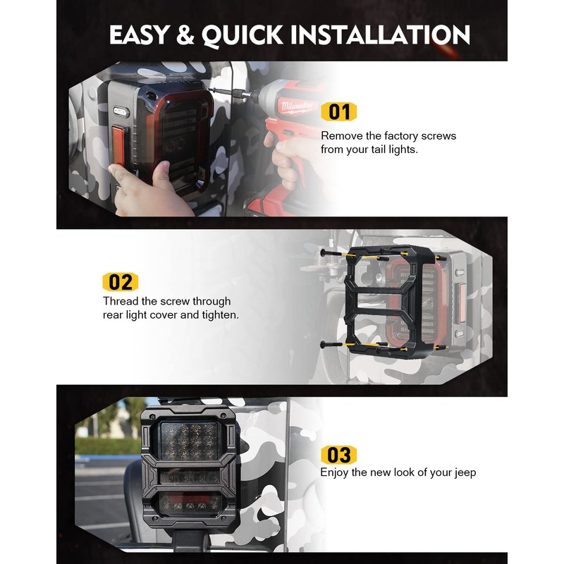 - Easy Installation - The simple installation process requires no drilling and comes with three sets of mounting screws, ensuring a perfect match with your existing taillights.