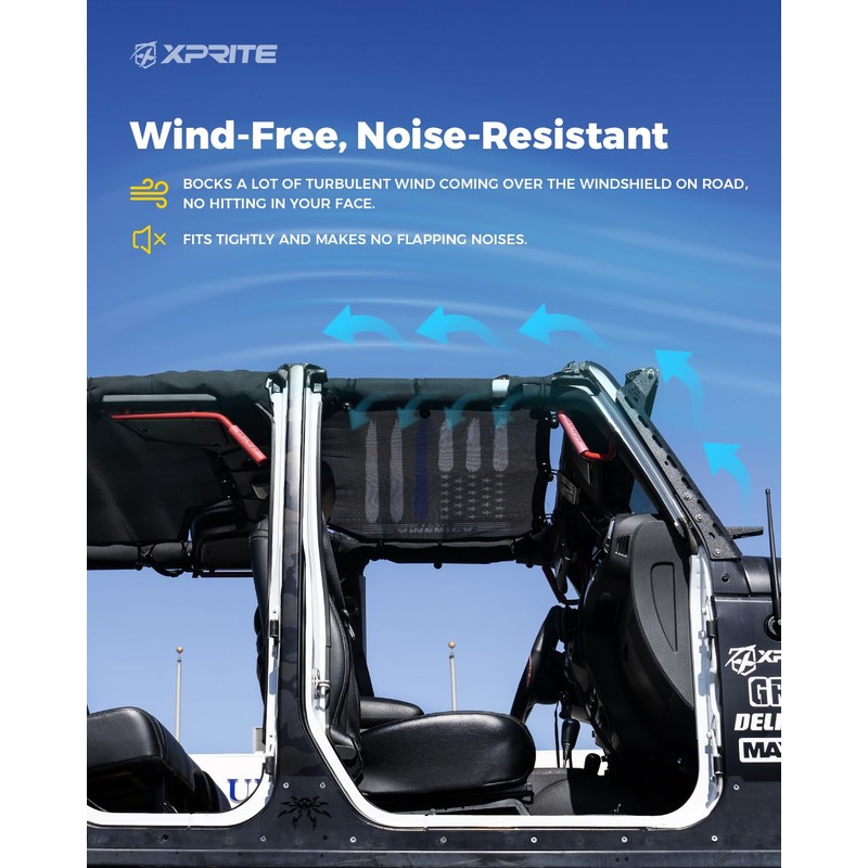 Xprite Thin Blue Line USA Flag Sun Shade Top Compatible with 2007-2018 Jeep Wrangler JK JKU 4 Door, Front & Rear Mesh Bikini Top, Effective UV/Wind/Noise Blocking Sunshade, 2PCS