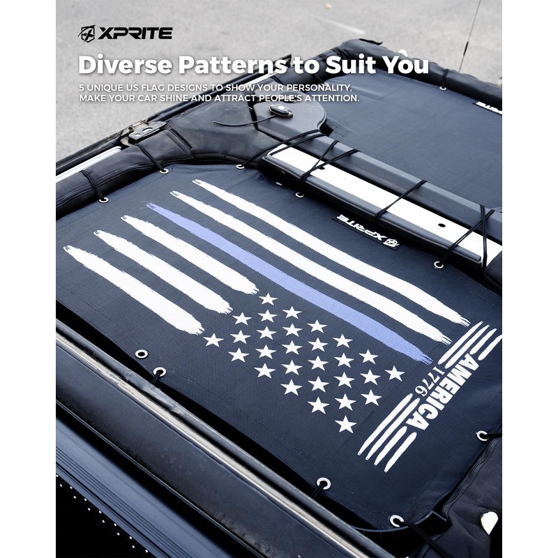 - Timeless Patriotism: JK sunshade adds a touch of history to your wrangler with 1776 thin blue line USA flag design, meticulously printed using UV technology. It's a patriotic statement that never fades.