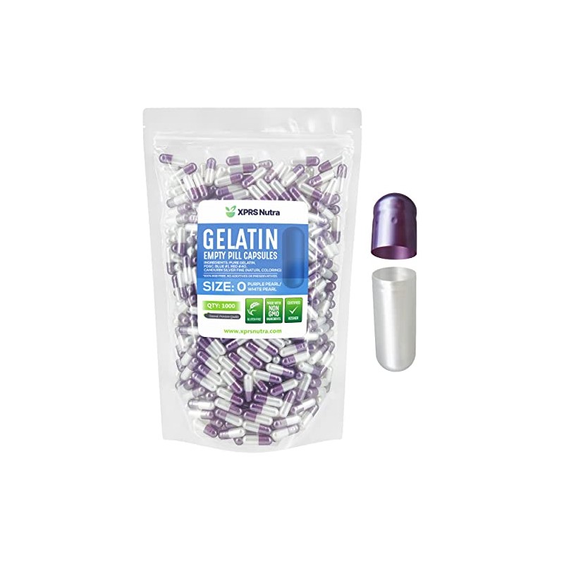XPRS Nutra Size 0 Empty Capsules - 1000 Count Empty Gelatin Capsules - Empty Pill Capsules - DIY Capsule Filling - Pure Bovine Pill Capsules Empty Gel Caps (Pearl Purple/White)