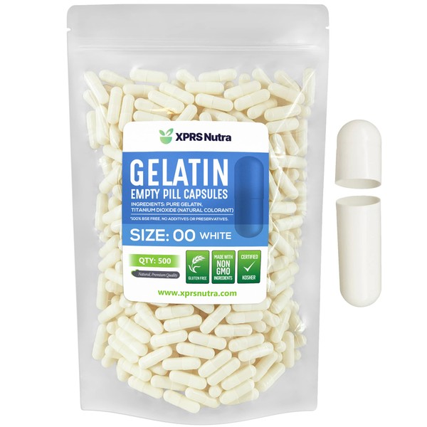 XPRS Nutra Size 00 Empty Capsules - 500 Count Empty Gelatin Capsules - DIY Capsule Filling - Fillable Pill Gel Caps for Do-It-Yourself Supplements (White)