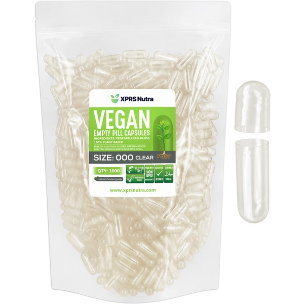XPRS Nutra Size 000 Empty Capsules - 1000 Count Clear Empty Vegan Capsules - Vegetarian Empty Pill Capsules - DIY Vegetable Capsule Filling - Veggie Pill Capsules Empty Caps Pills