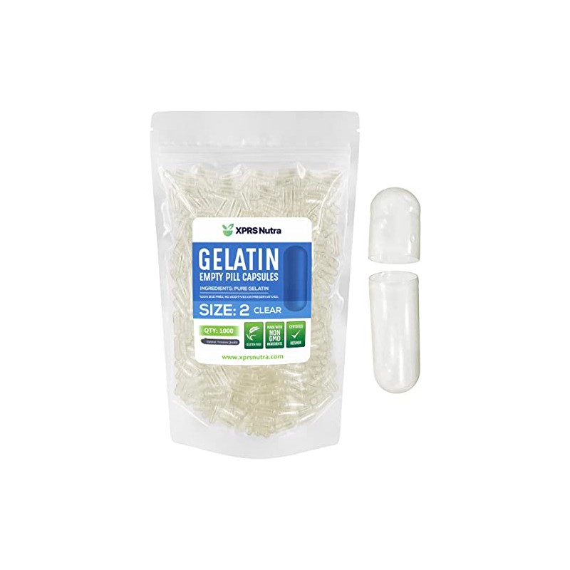 XPRS Nutra Size 2 Empty Capsules - 1000 Count Clear Empty Gelatin Capsules - Empty Pill Capsules - DIY Capsule Filling - Pure Bovine Pill Capsules Empty Gel Caps