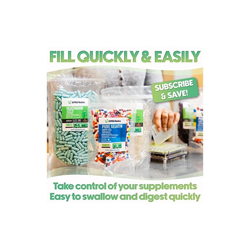 - Bulk Options - Choose from convenient 100, 500, 1000, and 5000 count bulk options. At XPRS Nutra (Capsules Express), we go the extra mile to help you attain the highest quality pill casing capsules to fill your pre-made supplement, vegetable powder, nootropics and fitness gelatin capsules. Our gel capsules empty 5 are here to help make your life easier.