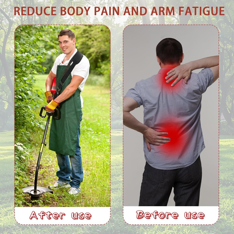 - Perfect weight distribution and comfort: the brush cutter strap reduces weight and reduces fatigue and pain in the arms by distributing the weight evenly across the entire upper body. Soft shoulder pads provide extra comfort and protect your shoulders during use.