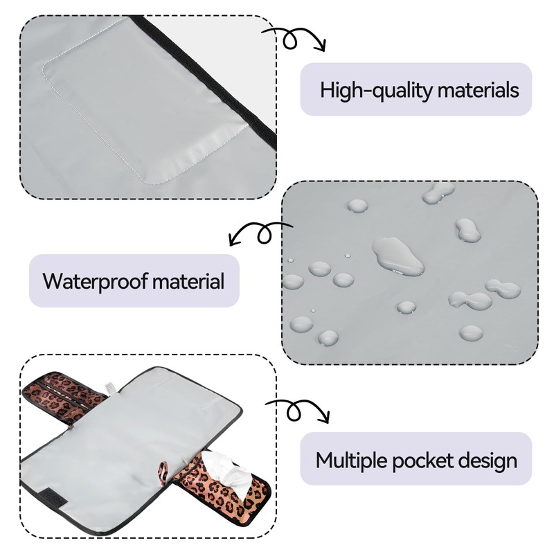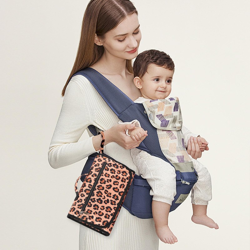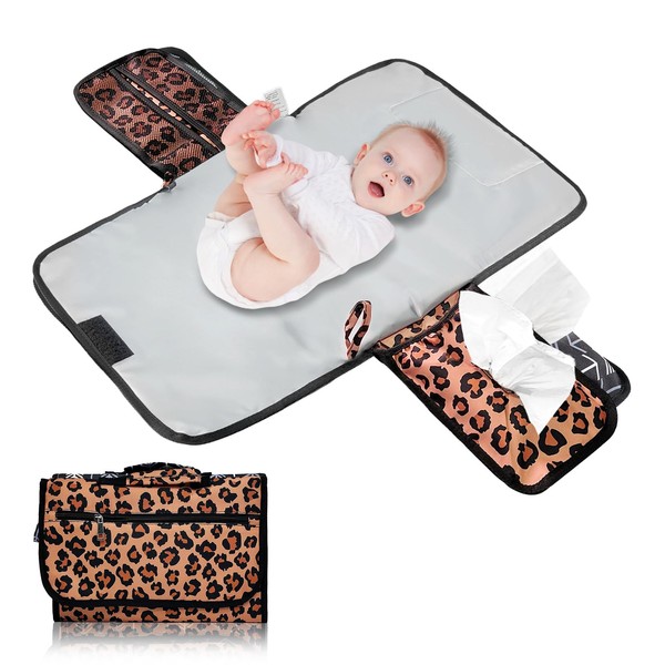 XQMMGO Portable Changing Mat, Changing Mat for Travel, Compact Changing Mat, Combinable Removable Changing Bag, Baby Changing Mat on Travel, Changing Table (Leopard Print)