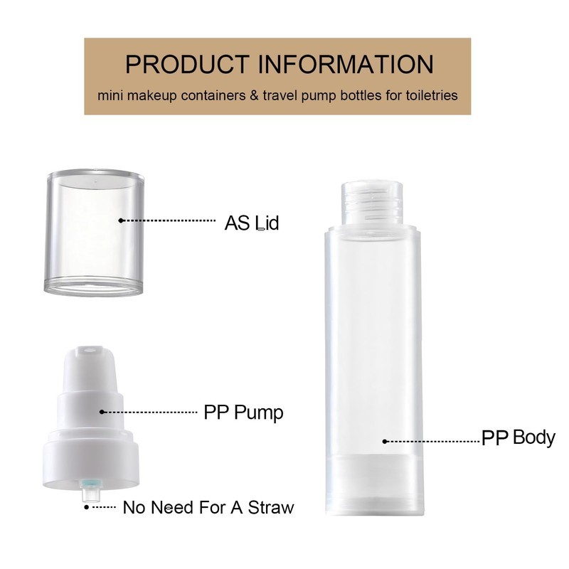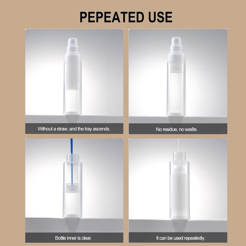 - 【CAREFULLY DESIGNED】 Wide mouthed bottles for easy canning, these airless bottles are designed without straws to maintain freshness for longer periods of time, extend their shelf life, prevent cosmetic oxidation and bacterial growth, and can be reused.