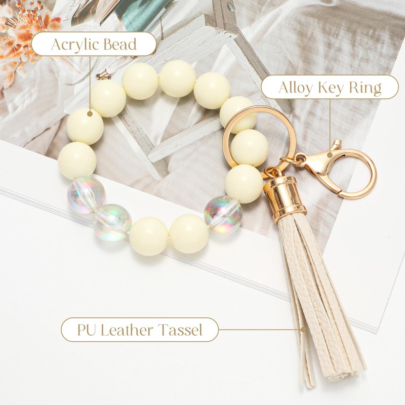 XquiziFit Keychain Bracelet Elastic Beaded Wristlet Bangle Car Keys Wallet Holder Chains for Women Off White