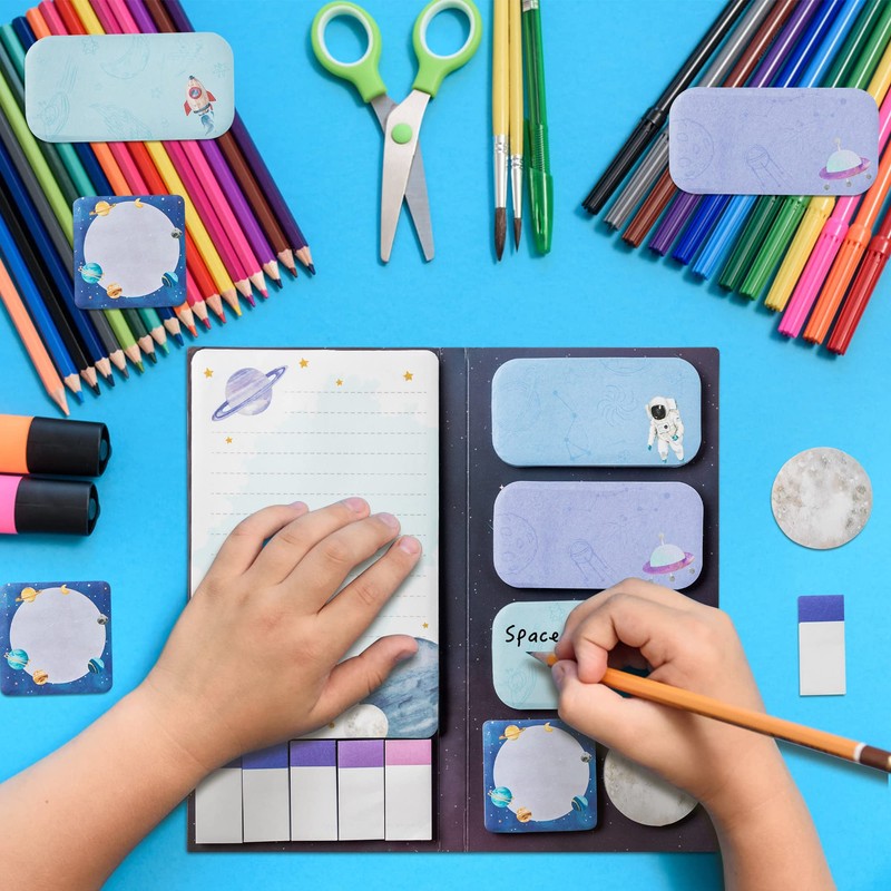 - Unique Design: Refuse to be single, we provide a variety of interesting outer space sticky notes! The cover of the set and the sticky notes inside are designed with galaxy sky theme, the patterns on the notes are cute and eye catching. Believe that kids will love it