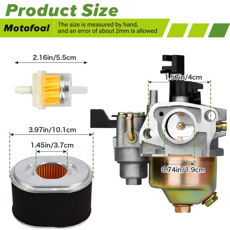 - Package includes: 1xCarburetor, 1x Air Filter, 1x Oil Filter, 1x Spark Plug, 3x Gaskets, 1 x Hose, 1 x Rocker