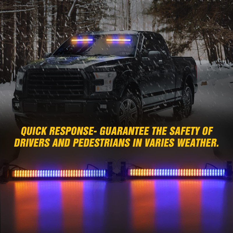 - Quick response- This hazard emergency flashing strip is very suitable for the front or rear internal windshield. Different color combinations can attract the attention of others and are easy to see in rain, fog, dust, and snow to warn other vehicles. Guarantee the safety of drivers and pedestrians in bad weather.