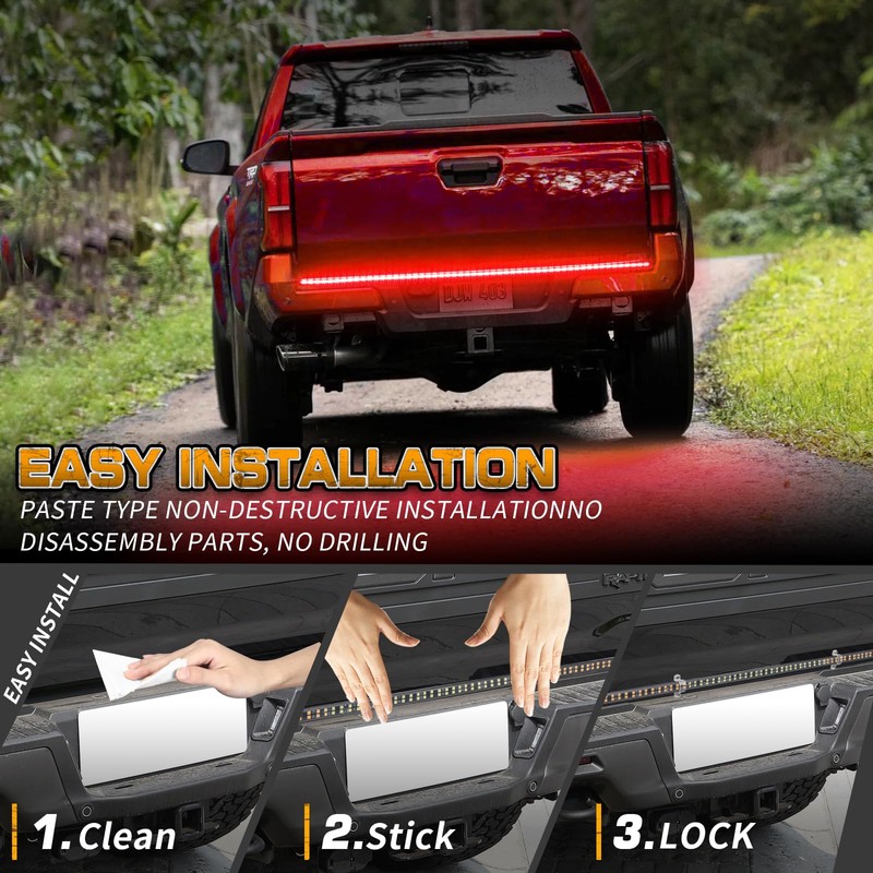 - 【MAKE YOU STAND OUT】This under tailgate light strip comes with 288 high brightness LEDs. The rear truck lights are bright and noticeable to the driver miles away. Adds a clear visibility to the rear drivers. Makes the vehicle much more noticeable and safer.