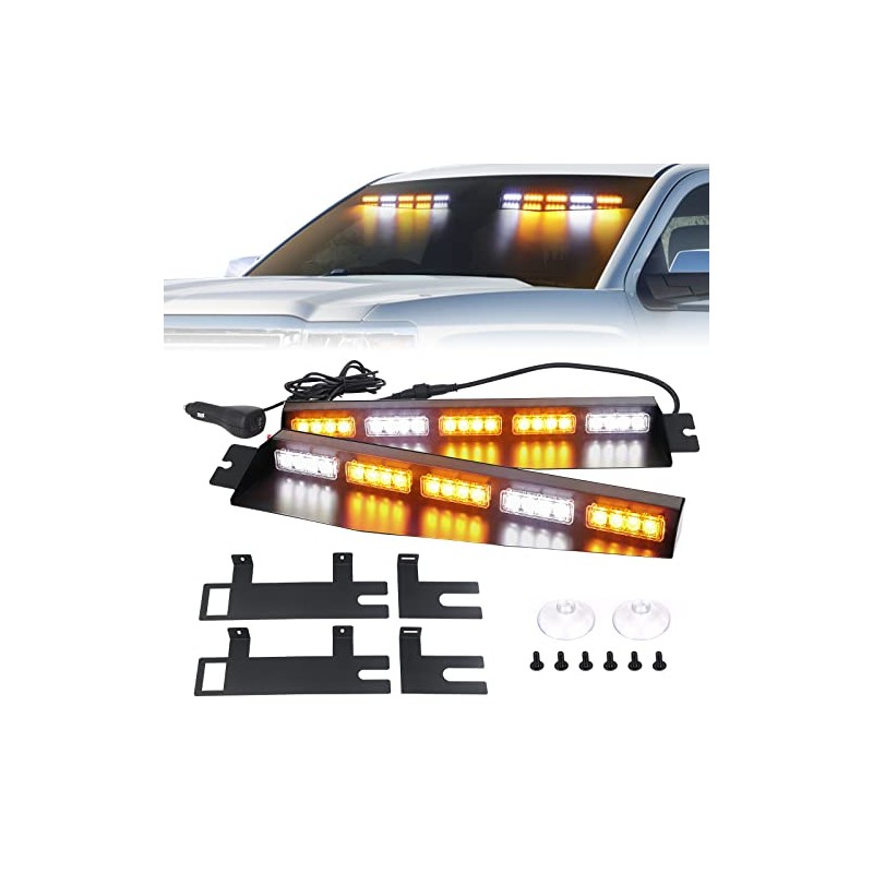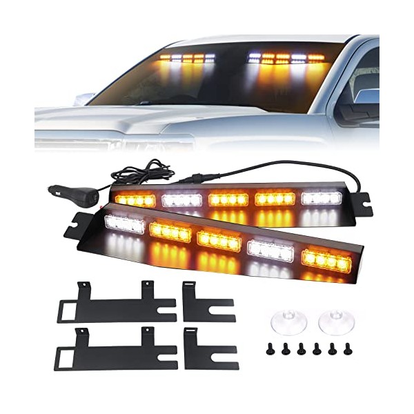 XRIDONSEN Emergency Strobe Visor Lights Interior Windshield Amber White Warning Flashing Lights for Construction Vehicles Trucks w/ Take Down, Deck Split Mount (34 inches, 40 LED)