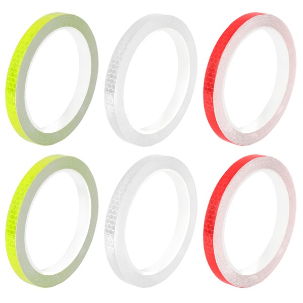 Xrkuu 6 Rolls Reflective Tape, 10mm x 8m Waterproof High Visibility Safety Warning Tape for Bikes Vehicles Helmets (Yellow, White, Red)