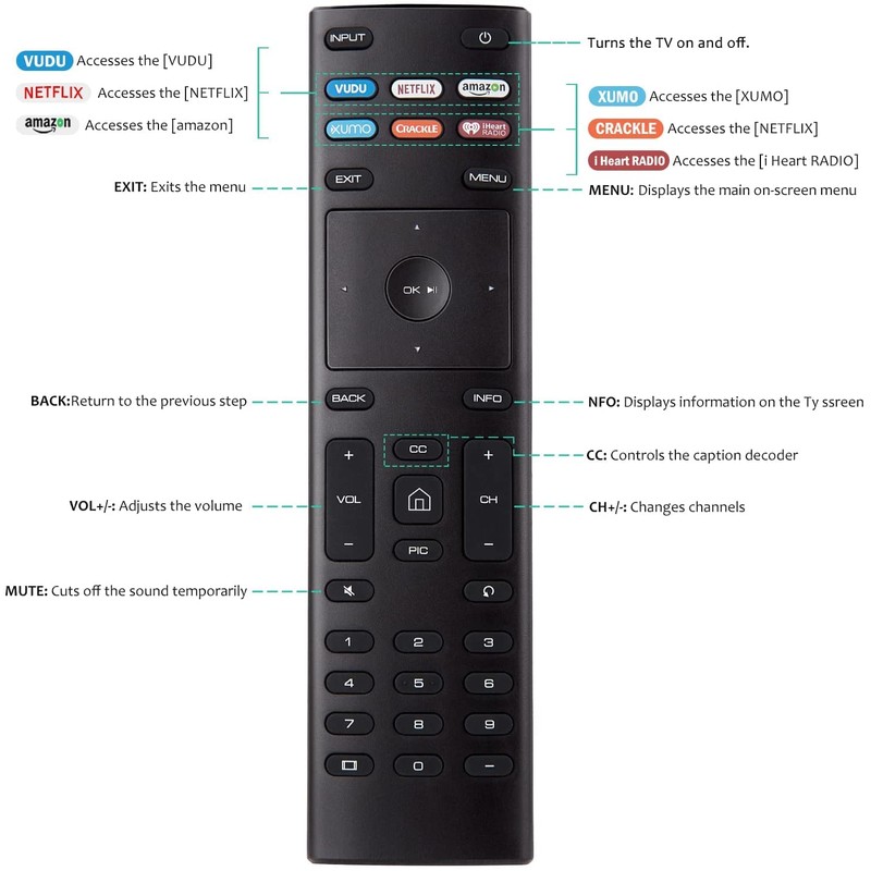 - Great replacement remote control for Vizio smart TV with Netflix, VUDU, Amazon, XUMO, CRACKLE, iHeart Radio Apps buttons