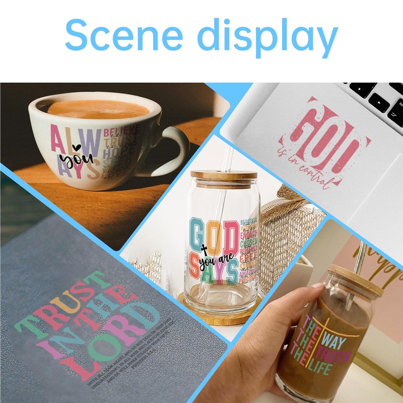- Versatile uses: UV DTF transfer stickers have clear and bright patterns and unique styles. You can stick them on glasses, water bottles, mobile phone cases, furniture, wood, metal products, mirrors, various glass items. You can also freely match these UV DTF transfer stickers with other items with smooth surfaces to decorate your favorite items and create your own crafts