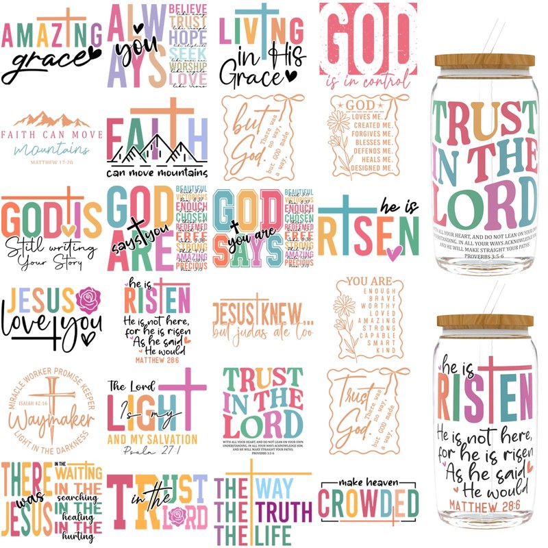 XRTHGS UV DTF Cup Wrap for 16 OZ 24PCS Inspirational Quotes UV DTF Stickers DIY Crafts can be Used for Mugs, Glasses, laptops, Thermos Cups, etc. (Christian Jesus)