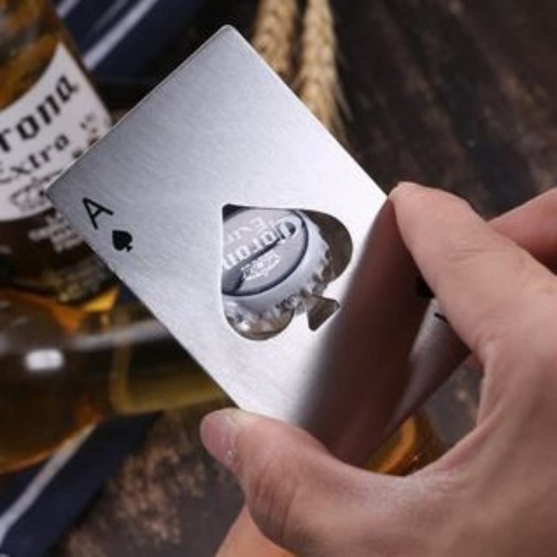 XSAJU Bottle Opener, Stylish Playing Cards, Set of 2, Spade Ace, Card Type, Bottle Lid Opener, Black, Silver