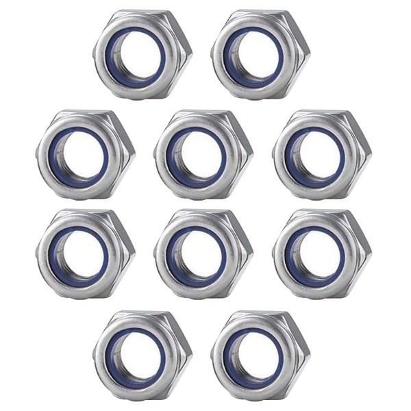 XSAJU Hex Lock Nuts M6 M5 M3 10 Pcs 304 Stainless Steel Nylon Insert Stop Loosening (M6)