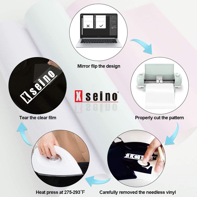 - Easy To Cut, Weed And Transfer - XSEINO HTV roller is made of thick and smooth PU material with good cutting application characteristics. With the clear cut line which let your design is easy to weed. The heat transfer vinyl is pressure and temperature sensitive and is easier to transfer to the desired surface. Our htv vinyl is compatible with all cutters machines.