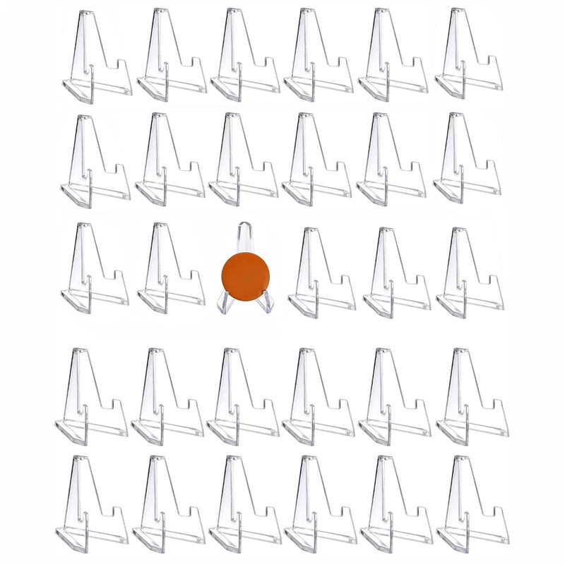 XSEXO Plastic Easels, Acrylic Easel Stands, Clear Display Easel, Acrylic Triangle Display Holder, for Display Coins, Medals, Pictures (Pack of 30)