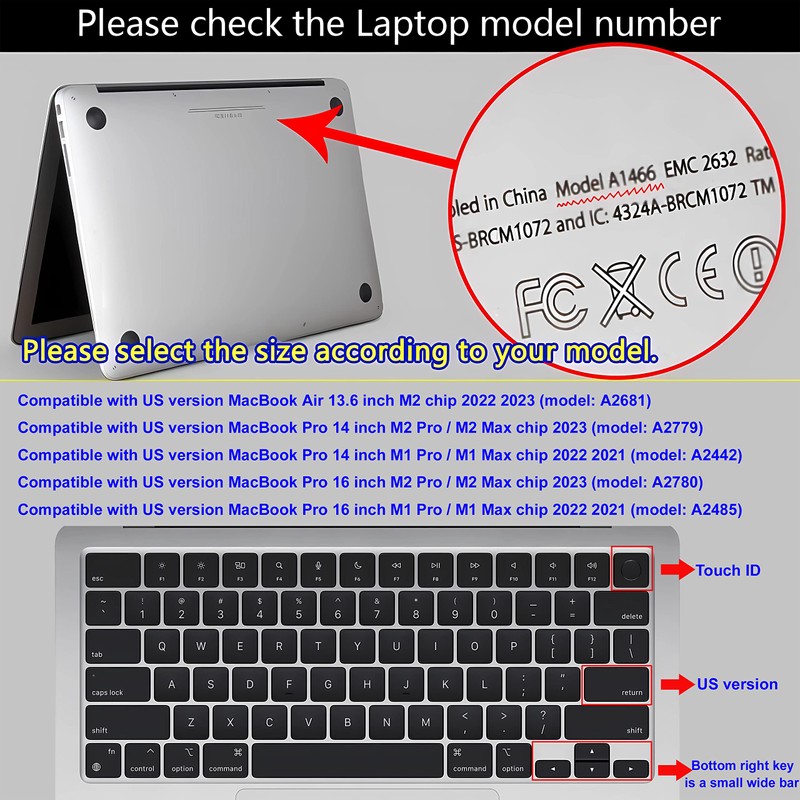 - Compatible with only US version Apple 2021 2022 2023 2024 released MacBook Pro 14.2 inch with touch ID molde number A2442 A2779 A2918 A2992, for MacBook Pro 16.2 inch with touch ID molde number A2485 A2780 A2991, for Macbook Air 13.6 inch with touch ID A2681 A3113, for Macbook Air 15.3 inch with touch ID A2941 A3114