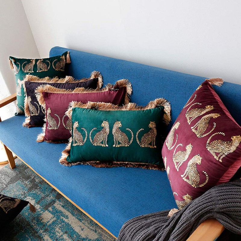 XSlive Lumbar Decorative Throw Pillow Cover with Tassels Leopard Pattern Cushion Cover Luxury Style Soft Velvet Pillowcase for Sofa Couch Bedroom (12"x20",Wine Red)
