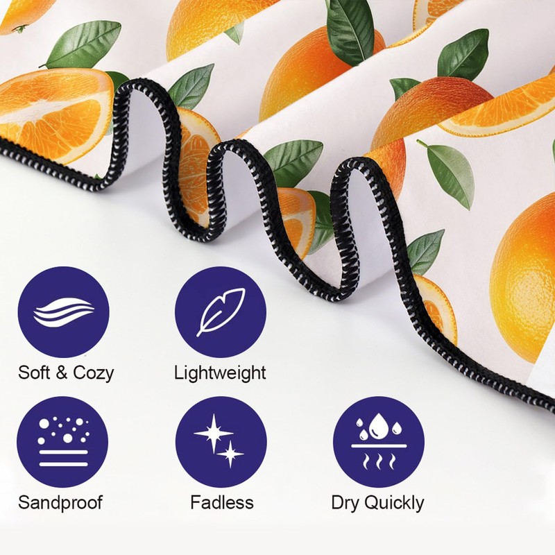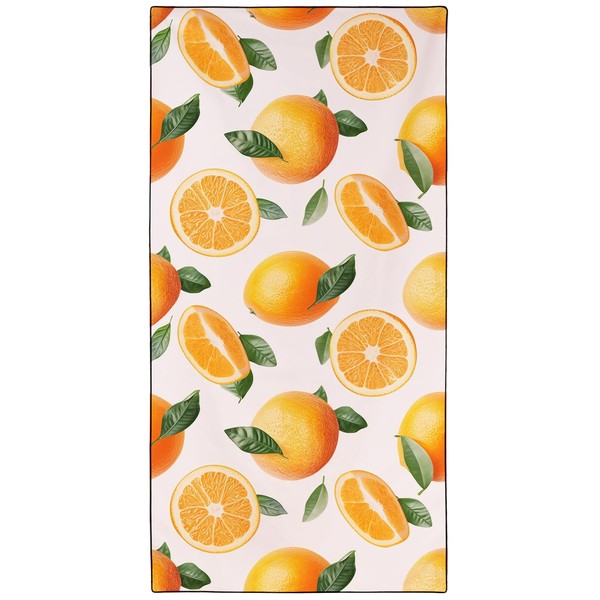 XSMEI Oranges Pattern Beach Towel Extra Large 36" x 72", Thin Lightweight Microfiber Towels with Fruit Design, Sand Free and Quick Dry, Compact Bag