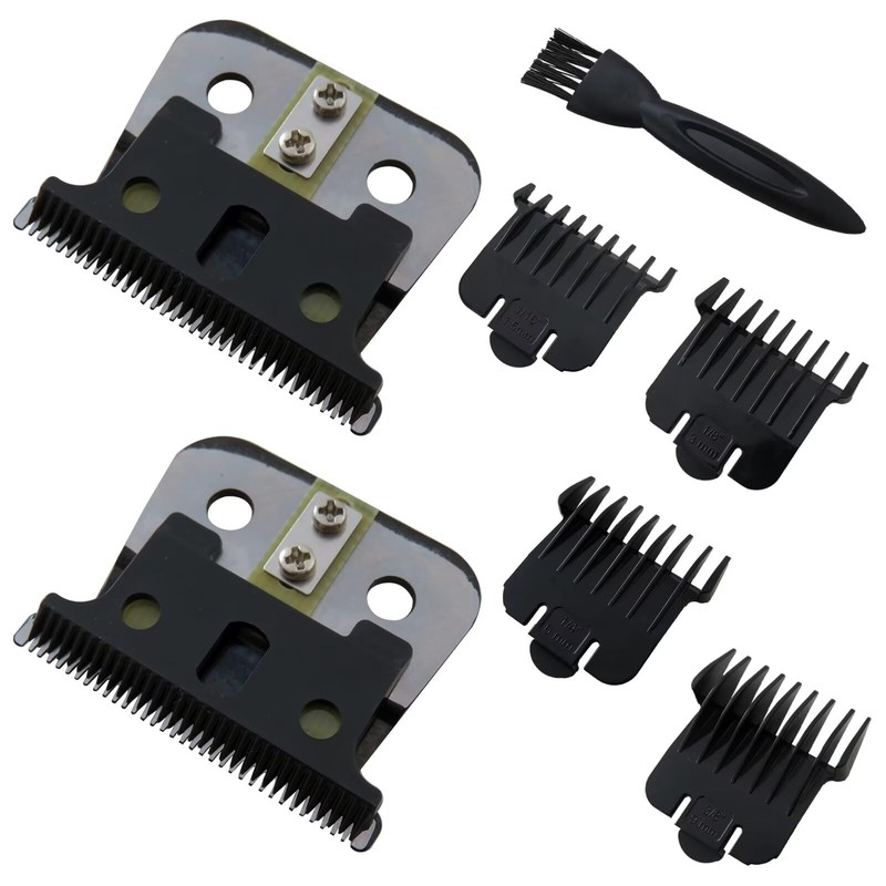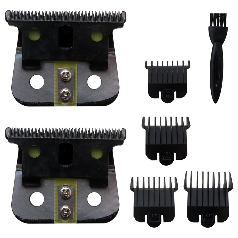 - You will Receive: 2x Black Steel T Blade, 2x Black Steel Blade, 4x Guide Comb, 1x Brush