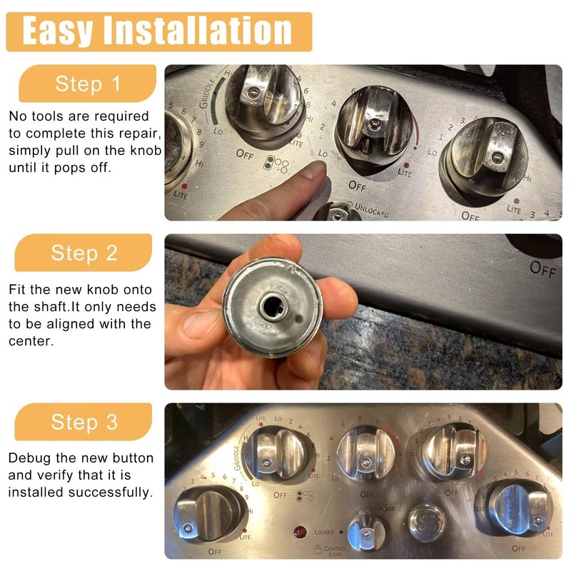 The 74010839 Surface Burner Knob is a direct replacement for the cooktops on your Kitchen. It lets you control the heat of the surface burner on the cooktop. No tools are required to complete this repair, simply pull on the knob until it pops off, and fit the new knob onto the shaft