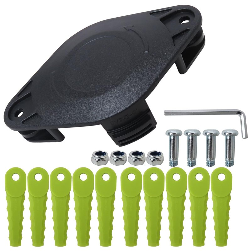 - Upgraded Blade Accessories: This upgraded weed eater replacement head can only be used with plastic blades for now, not s with trimmer spools. This product kit will send 10 plastic blades. The advantage of plastic blades is that they are more dur able than trimmer wire while cutting faster, but they are also consumable. The trimmer head we changed to nylon material, which will be more du rable