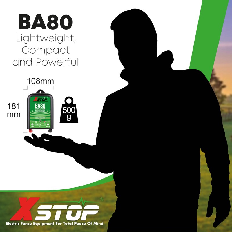 XSTOP 12 Volt Battery Powered Electric Fence Energiser XSTOP BA80 10Km Range,...