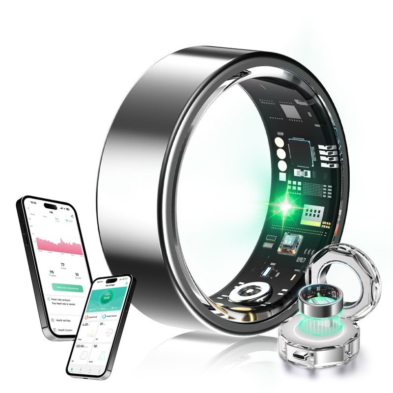 - ⚡【300mAh Super Charging Box - 10 Days of Endurance】1 Hour Flash Charge ➔ 7-10 Days of Full Charge! Aviation-Grade Battery for 120 Hours of Continuous Use (All-Day Tracking). The Compact Charging Case Can Store An Additional 20 Charges, Making It Ideal for Business Trips or Marathon Training. No Subscriptions, No Hidden Fees: A 100% Self-Sufficient Android/IOS Fitness Tracking Ring.