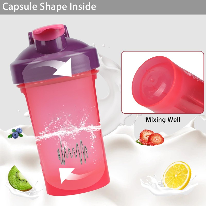 - Compact and Portable: With a capacity of 400ml/14oz, this small shaker bottle with mixer ball is compact yet spacious enough for your protein shakes and other blended beverages. The built-in handle adds convenience for on-the-go use.