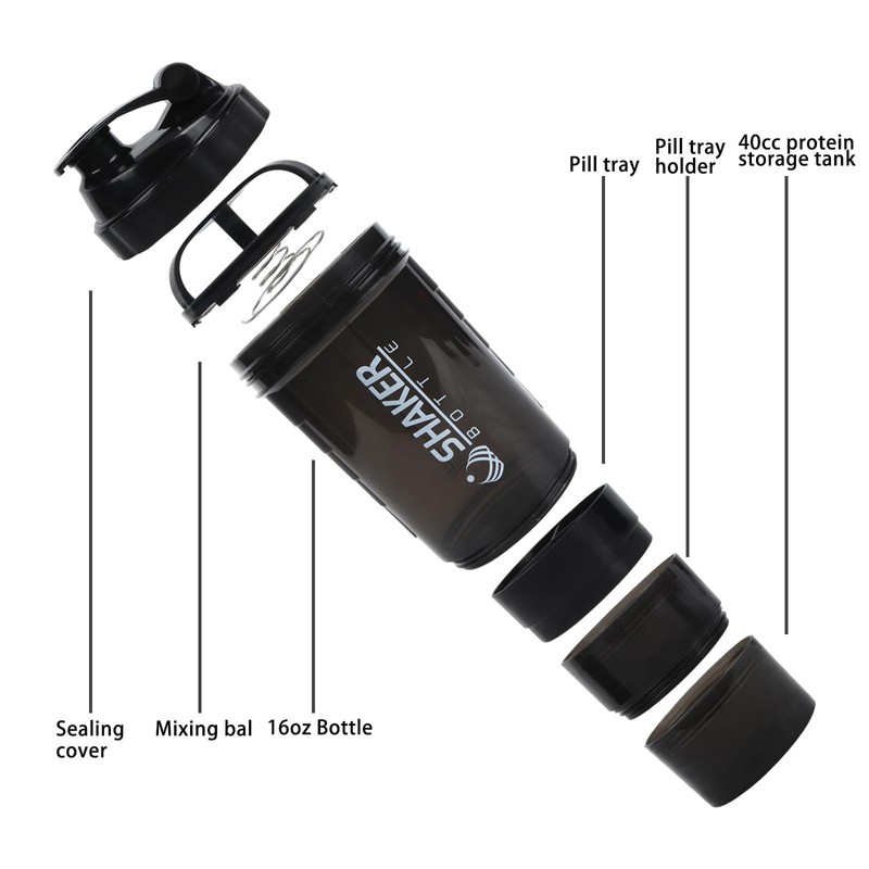 - With Pill and Protein Powder Storage: Stay organized on the go! Our shaker bottles are equipped with separate compartments for storing your pills and protein powder. Conveniently carry everything you need for a successful workout session in one bottle.