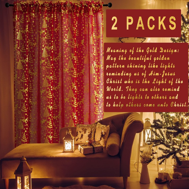 - MAGICAL NIGHT: Specially custom designed for Christmas eve/night,these sparkle voile drapery would glow in the night with lighting,adding gold decor accents for living room,bedroom,girls/kids room.Glowing night full with warmth and joy.