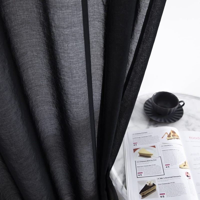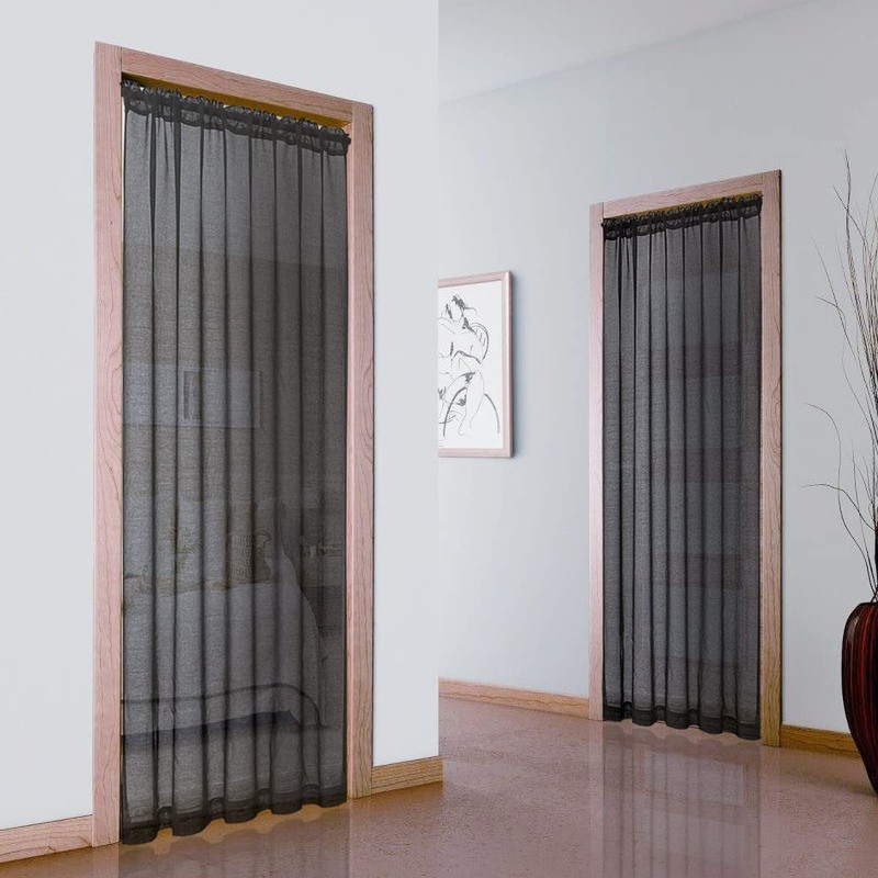 XTMYI Sheer Door Curtains for Doorway,80 in Length,50% Semi Privacy,Airy Lightweight Temporary Room Divider,Window Curtains for Bedroom Living Room 78-80 Opening,80 Inches Long,Black