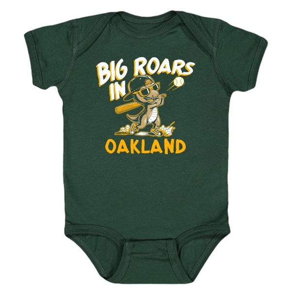 Xtreme Apparrel Big Roars in Oakland Kid's Dinosaur Baby Bodysuit for Baseball Fans (Forest Green, 18M)
