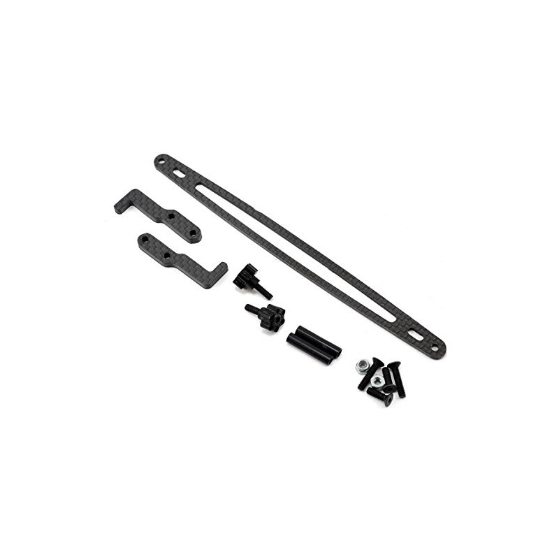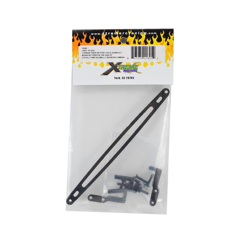 This is an optional Xtreme Racing XRAY T4 Carbon Fiber Battery Hold Down Kit. Use this kit in place of the standard strapping tape method for a more secure and better looking battery retaining system. Package includes all the parts needed for installation.