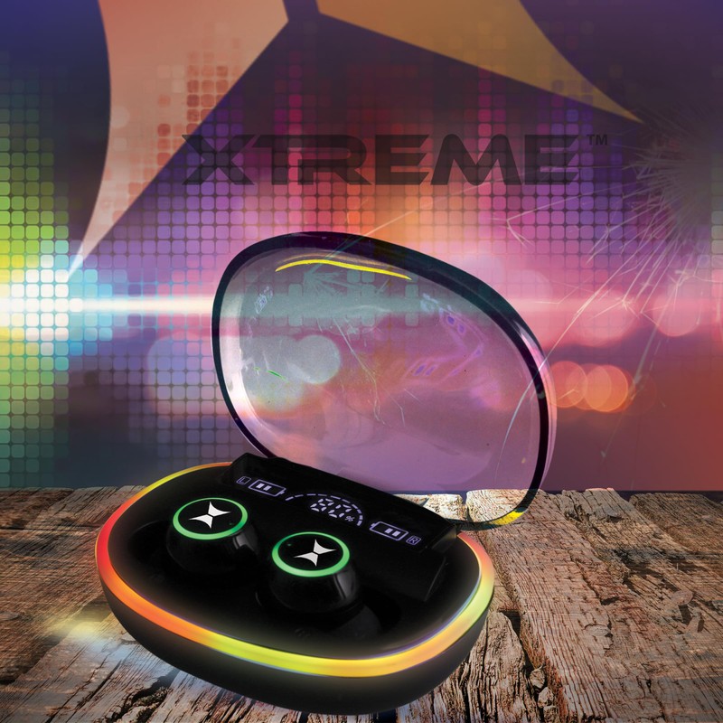 Xtreme RGB Wireless Earbuds with Charging Case, LED RGB True Wireless Bluetooth Earphones with 33 Ft Range, 5 Hour Playtime (16 with Case), 3 Full Charges, LED Display, Smart Touch Controls