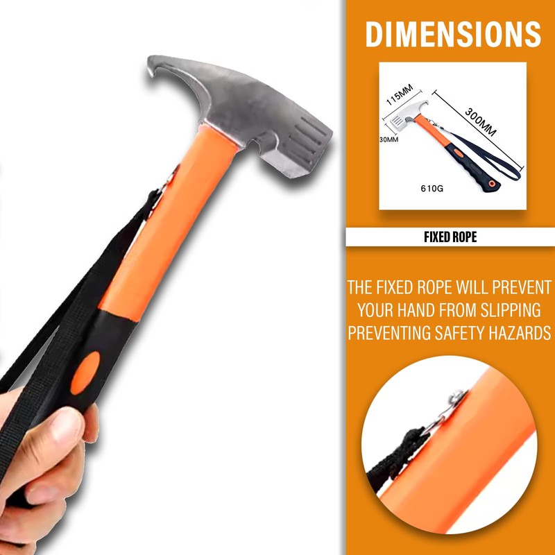 - COMFORTABLE GRIP & SAFETY STRAP - The hammer’s rubber-covered handle ensures a comfortable and non-slip grip, with an added holding strap to prevent accidental drops while hammering pegs or stakes.