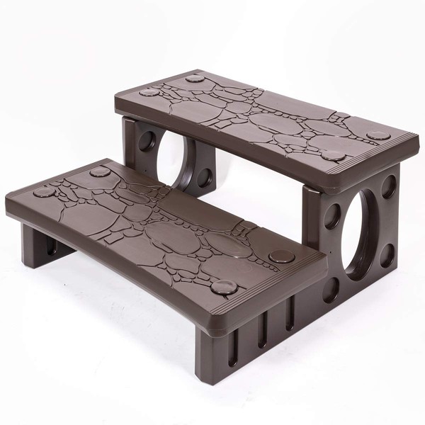 XtremepowerUS Universal Multi Purpose 2-Step Spa Hot Tub Pool Outdoor Indoor Camper RV Deck Steps Sided Step, Mocha