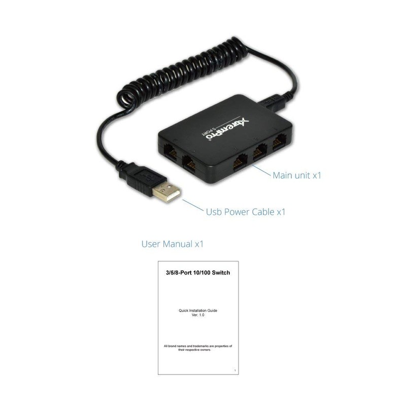 - 5- port USB powered 10- 100Mbps Ethernet RJ45 Network switch hub