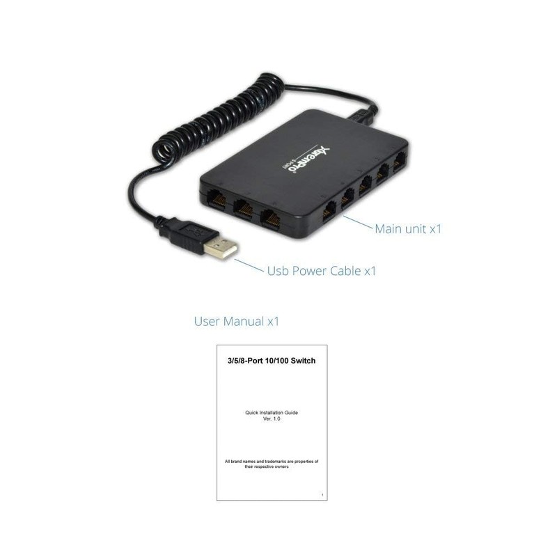 • 8- port USB powered 10- 100Mbps Ethernet RJ45 Network switch hub