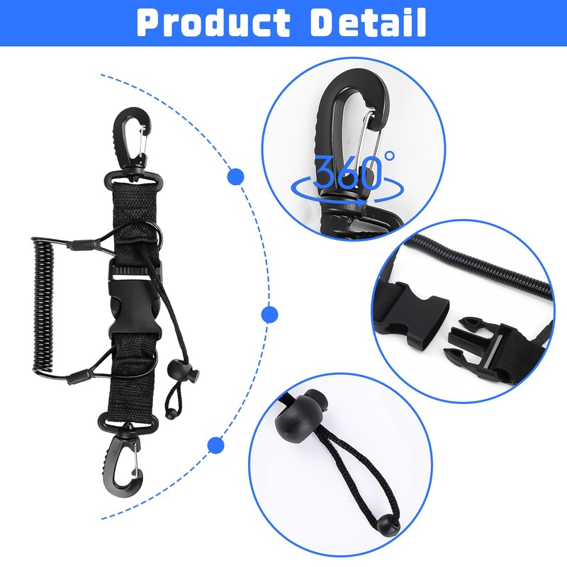 - Easy to use: the diving spiral cable has carabiner on both sides. You can connect one end to your backpack and the other end to your device, leaving your hands free while preventing the device from being lost.