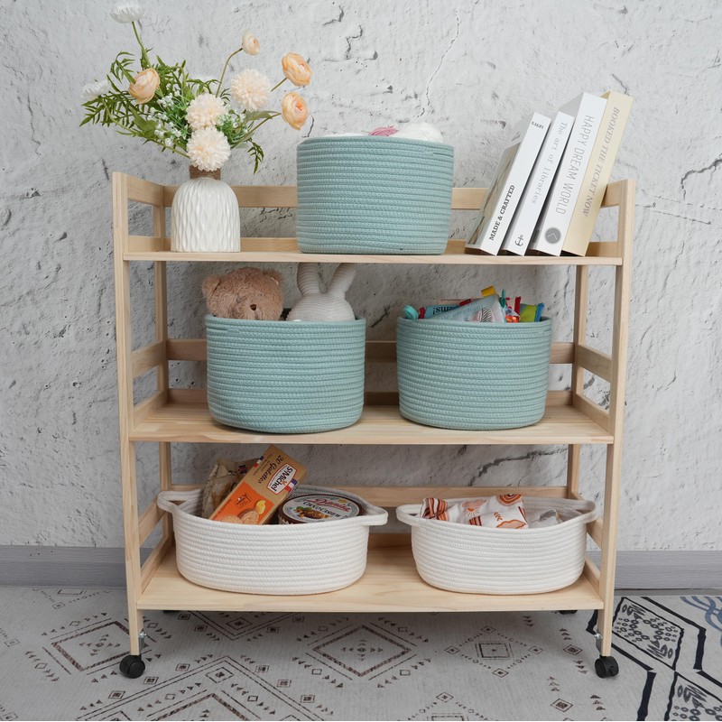 - Premium Quality Cotton Rope Baskets: Crafted from natural, odorless cotton rope, these small round storage baskets are durable, soft, and safe, making them ideal for baby-friendly spaces. With no sharp corners, reinforced stitching, and hidden, widened handles, they combine style and function to enhance any home décor.
