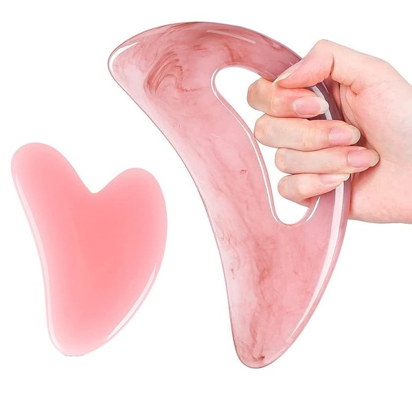 - Suitable size: the size of the scimitar shaped resin gua sha tools measure around 8.2*4.4 inches,the size of the heart-shaped gua sha tools measure around 3.3 x 2 inches, the appropriate size for you to hold and use, and this size is suitable for both men and women, please check the size if you need
